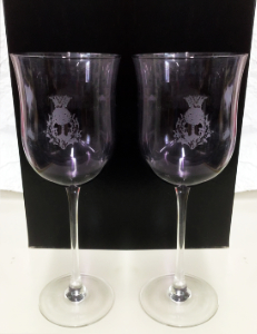 $39.90 per pair (gift box included) - Scottish Thistle etched into a pale lilac coloured tulip bowl