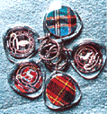 A best seller in the Scottish Clan keyring market, each keyring displays the Clansman's Crest and motto and on the reverse an actual piece of the Clan tartan.